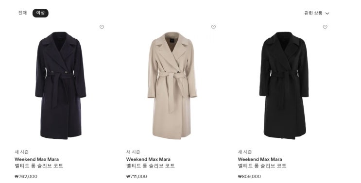 막스마라 레지나 60만원대 / 에르노 경량패딩 60만원 / 몽클 니트패딩 90만원대