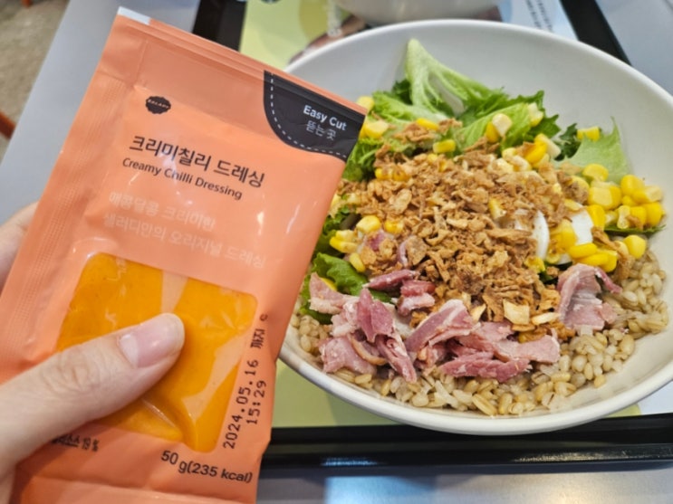 샐러드가 생각보다 집에서 먹으면 맛있기 어렵다.. 채소를 종류별로 구입하기 비싸고 소스도 샐러드에서 아...