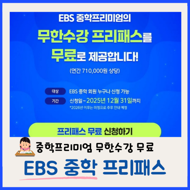 EBS 중학 프리미엄 무한 수강 프리패스 무료 신청 후기 (내 아이를 위한 사교육은 없다.)