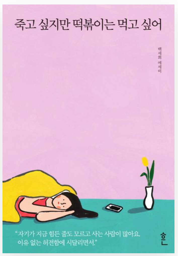 도서 제목: 죽고 싶지만 떡볶이는 먹고 싶어 저자: 백세희 백세희 작가의 죽고 싶지만 떡볶이는 먹고 싶어...