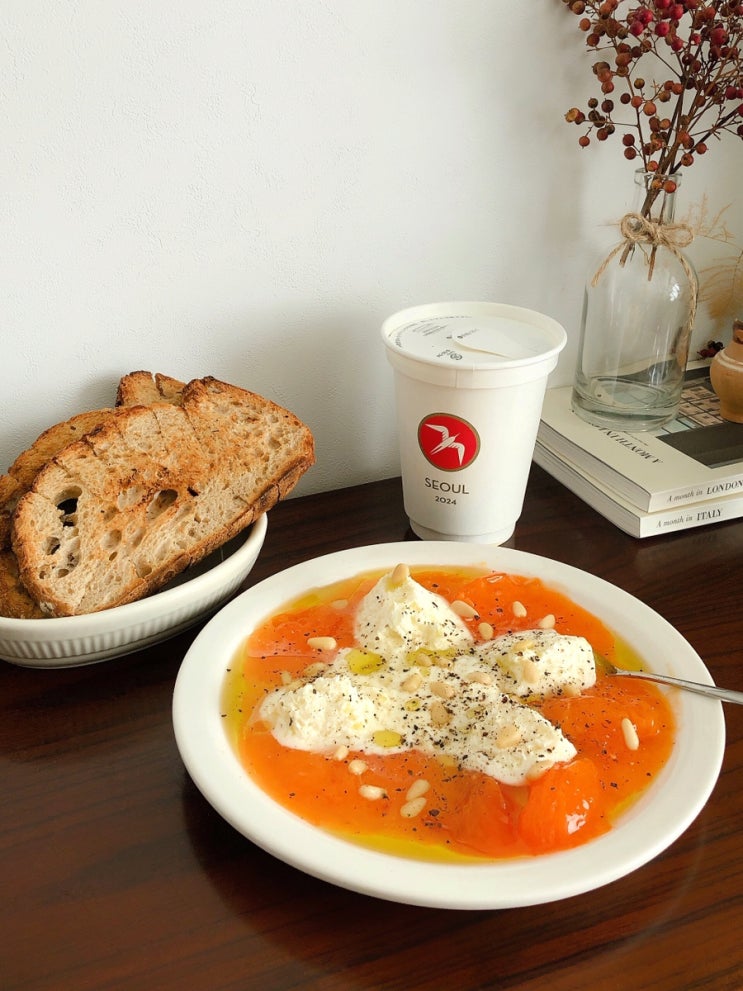 사워도우와 어울리는 홍시 부라타 (w.푸글렌 커피)