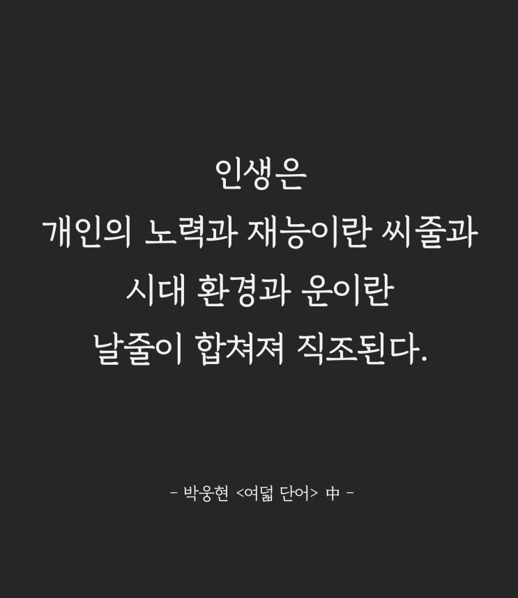 운칠기삼이란 말은 너무 무책임해 보이고 승자독식이란 말은 너무 야만스러워 보입니다. 그런데 분명한 건 ...