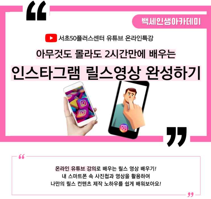 창작을 위한 강의 소개) [서초][여가] 인스타그램 릴스영상 완성하기(무료, 온라인,4회차)