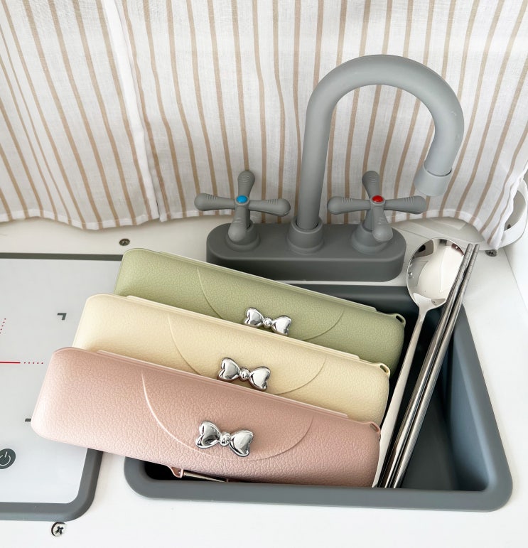 유하룸 휴대용 리본 수저통 사랑스러운 개성이 넘치는 디자인을 좋아하는 아이&어른들을위한 휴대용 수...