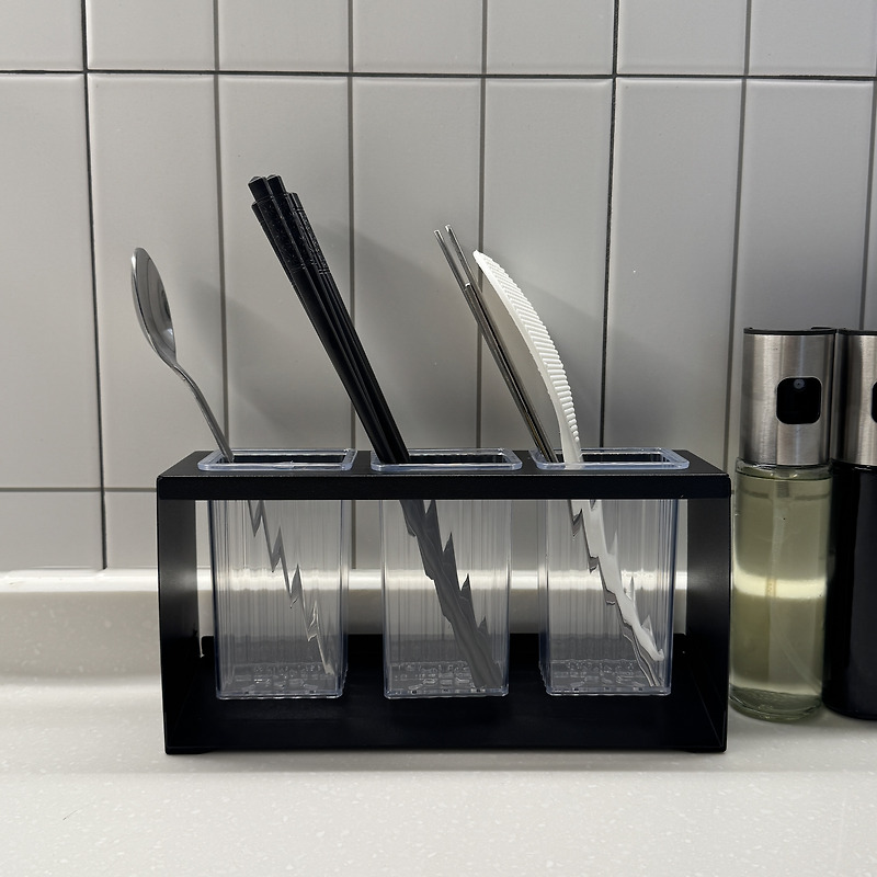 혼자 사니 수저나 젓가락 다 합해봐야 몇 개 안 되지만, 그래도 그냥 놔두기에는 애매해서 수저통으로 쓸만한 거 찾다가 구매한 거다. 확실히 저렴하니 재질은 별로다. 스테인레스 스틸이 아니