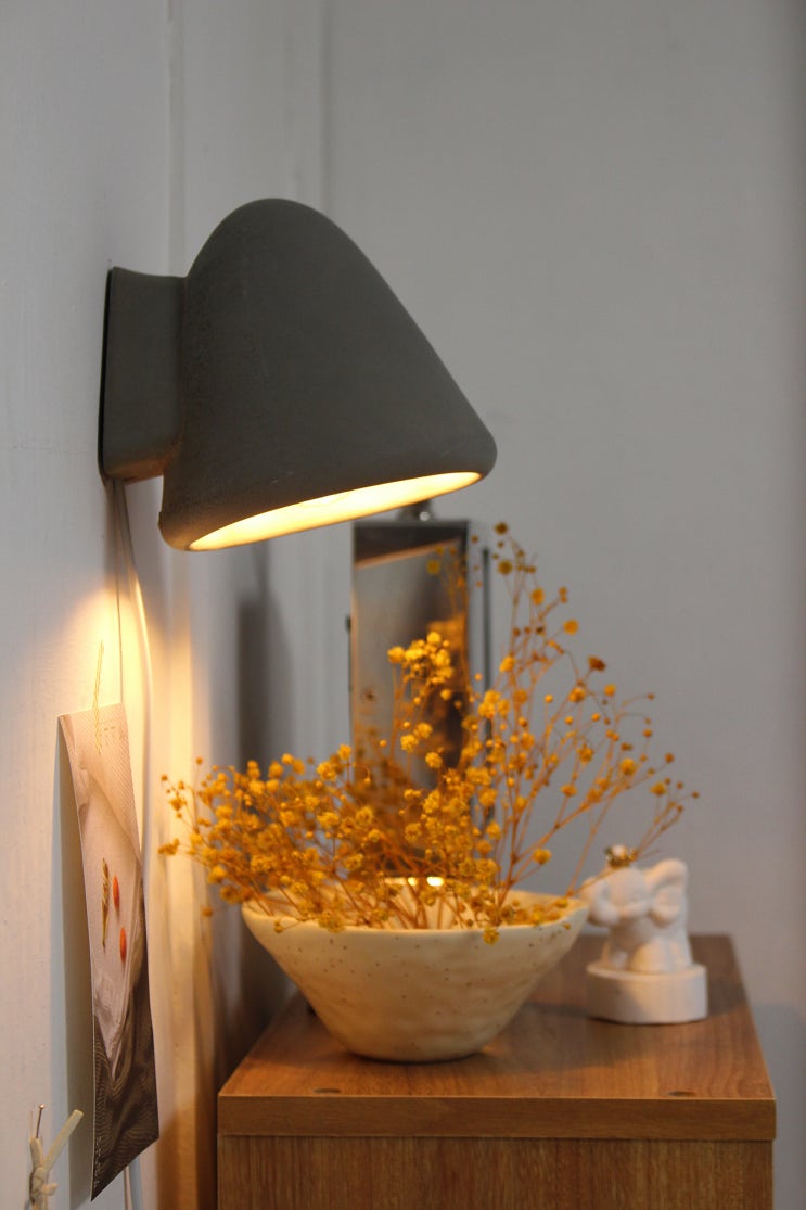 내추럴한 콘크리트 벽조명 분위기 있는 뭉클 침실무드등 설치