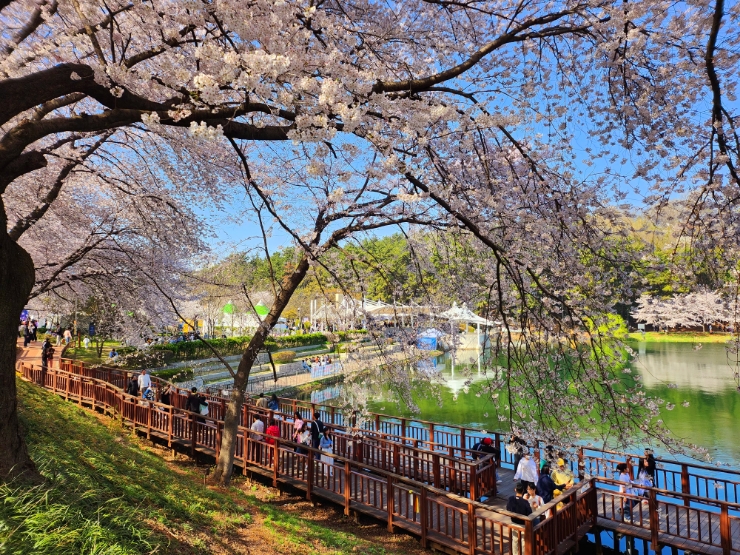 군산 은파호수 공원!! 벚꽃이 만개한 은파 호숫가에 봄을 만끽하는 사람들로 들썩 2024년은 벚꽃을 볼 수 ...
