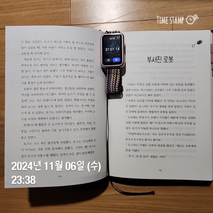 조금만 더 일찍 씻고 잠자리에 들어가면 좋을텐데 항상 늦어지니 아쉽다. 늦어서, 오늘은 15분만 읽고 자야...