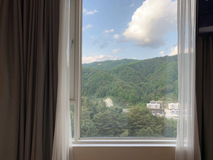 평창 더 화이트 호텔 스탠다드 더블룸 지금 보이는 창밖 풍경은 5월 말입니다. 이제야 기록을 하네요^^ 창...