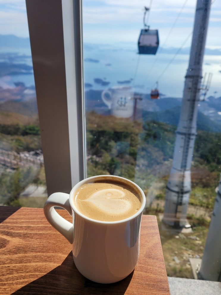 하동 케이블카 카페 빈앤브레드에서 따뜻한 아메+라떼 하동의 멋진 풍경을 보기위해 케이블카 전망대를 찾...