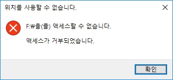 윈도우10설치후 디스크 액세스 거부되는 경우 해결방법