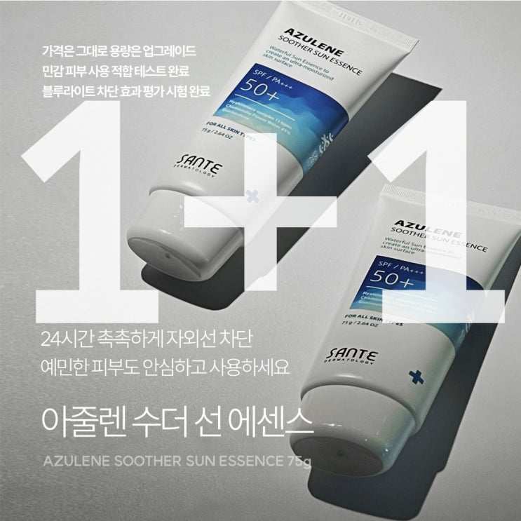 상떼 수더 선에센스 상떼선크림 1+1 일년에 단한번 용량 75g 업그레이드!