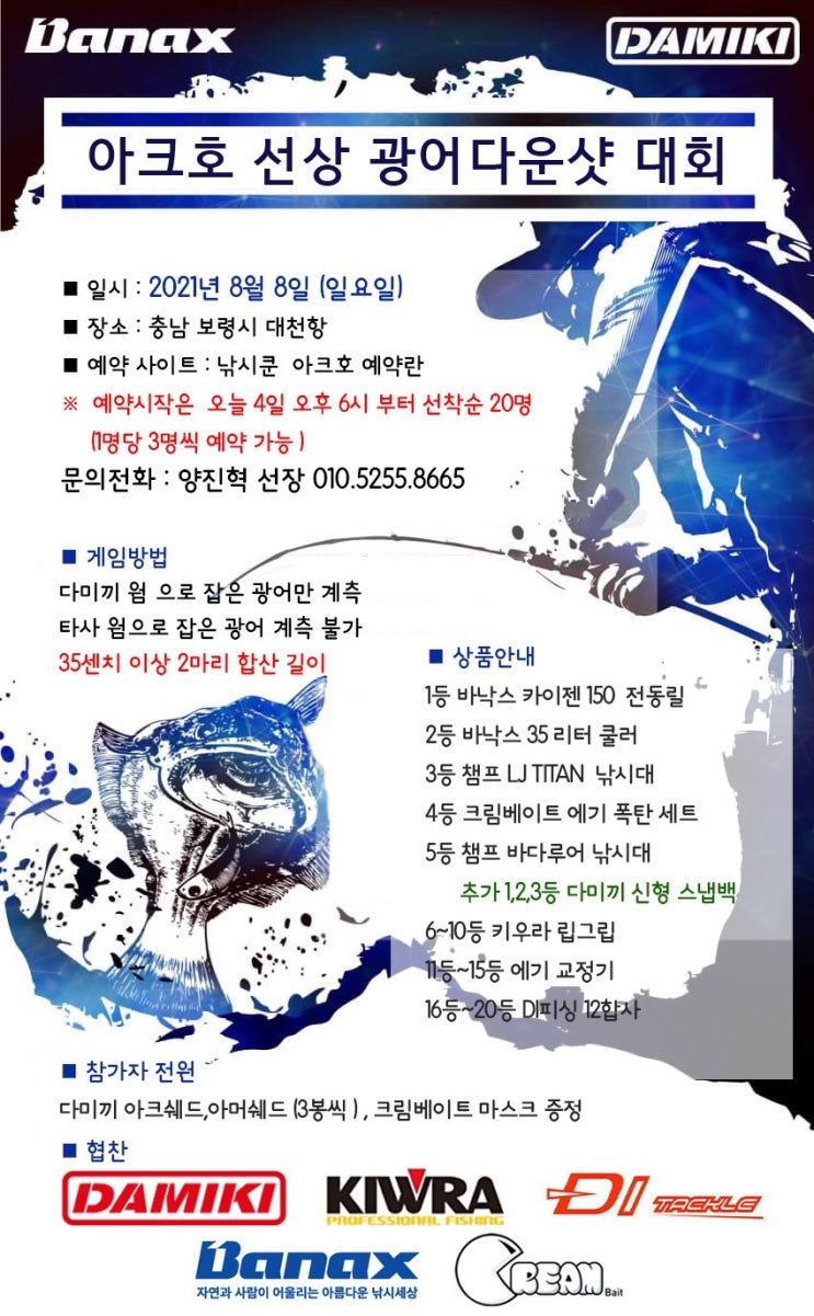 광어 시즌 오픈을 맞이해 아크호 광어 다운샷 대회를 진행합니다~^^ 푸짐한 상품과 즐거운 시간 마련하도록...
