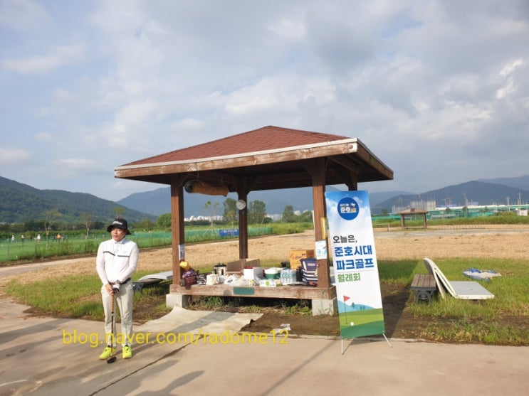 친구 부인의 제안으로 김해 준호시대 파크골프 에서 주최하는 파크골프 대회에 참여 했다 교육 받고 한 두...
