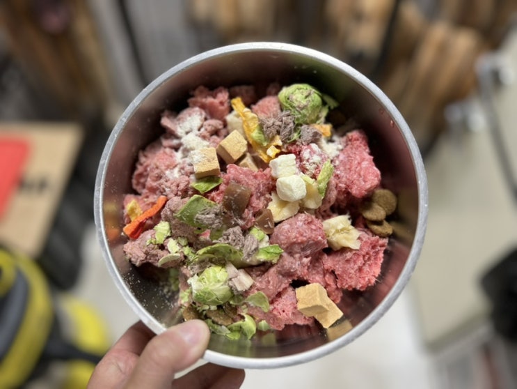 하루 중 한끼는 생식 한끼는 사료 급여로 돌아왔다. 겨울이니까!! 추가로 정희언니가 보내주신 생식 울 누...