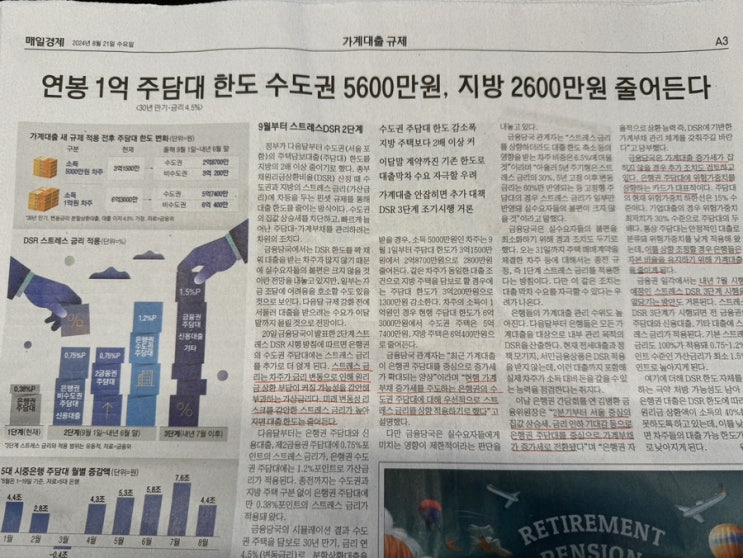1. 제목: 가계 대출 규제 2. 요약: 9월부터 스트레스 DSR 2단계 시행 3. 주요 내용 - 수도권 주담대에는...