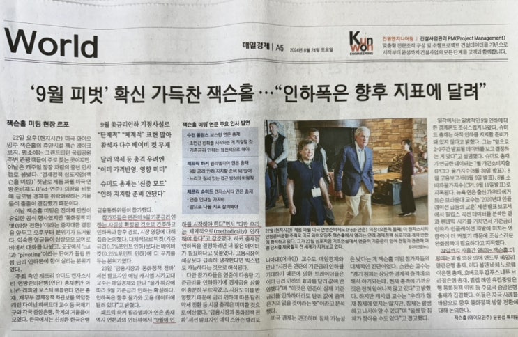 1. 제목: 9월 피벗 가능성 상승 2. 요약: 미국 연준(Fed)의 제롬 파월 의장이 잭슨홀 미팅에서 9월 금리 ...