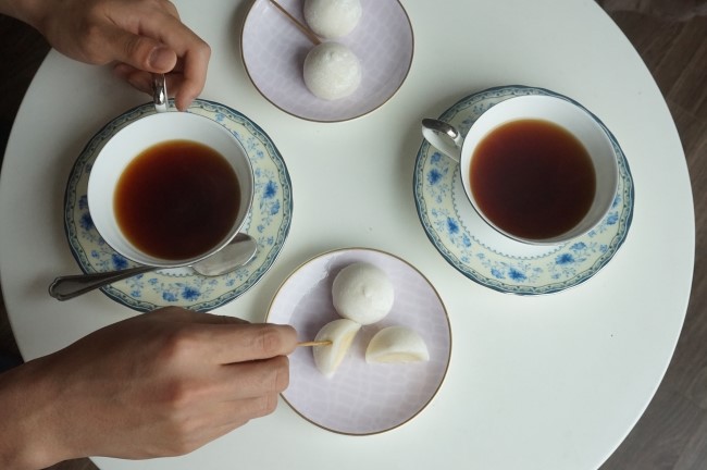 앙증맞고 귀여운 작은 하얀 찹쌀떡 (모찌) 쫀득한 찹쌀떡 (모찌) 속에는 열대과일의 왕!! 천국의...
