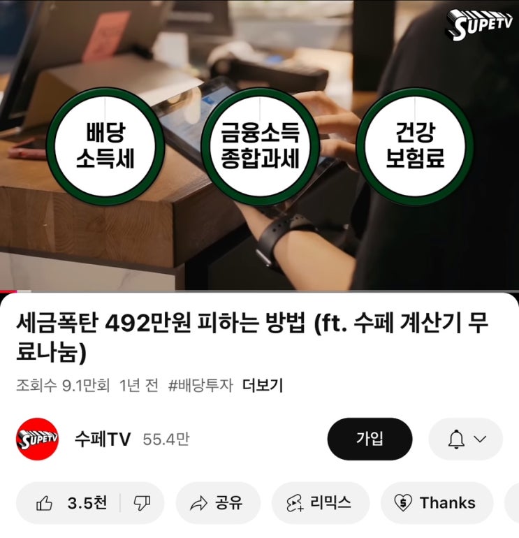 배당 투자하며 언젠가 결국 마주하게 될 세금 궁금해서 검색하다가 수페TV에서 정리를 너무 잘해주셔서 ...