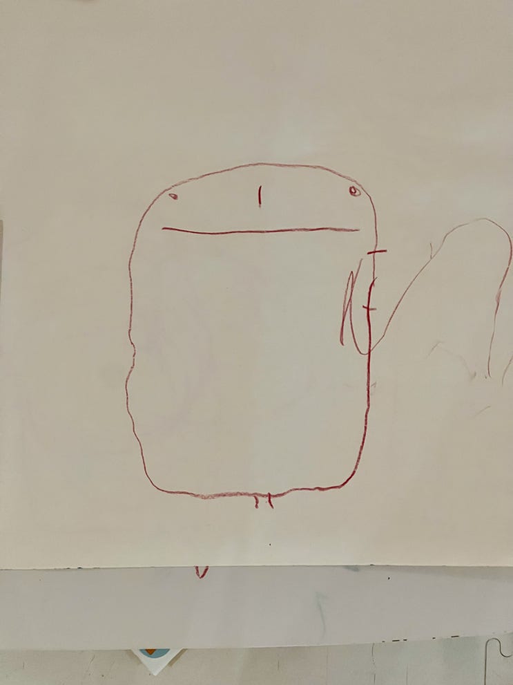이룬의 그림으로 블챌을 뗴운다;; 커다란 네모를 그렸다더니 눈코입을 그리고 앙증맞은 팔다리를 그린다 ㅋ...