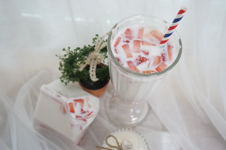 리얼딸기라떼,딸기우유만들기