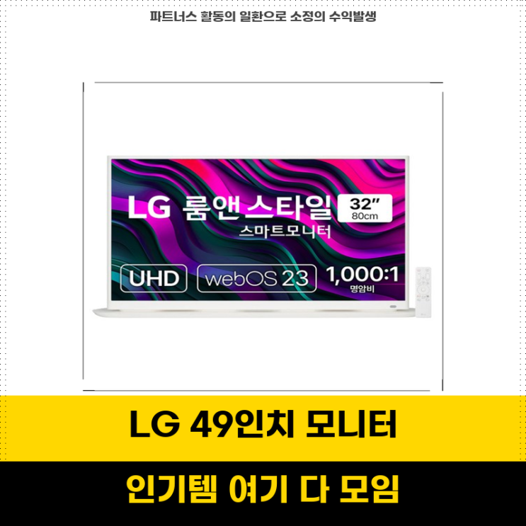 신상템 LG전자 49인치 스마트 4K UHD 모니터 방문설치로 간편하게 사용하세요 오늘 소개할 제품은 단...