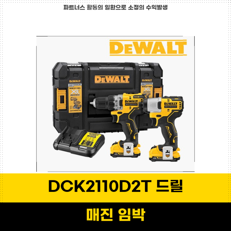 핫타임최고 디월트 DCK2110D2T 12V 전동드릴 충전 드라이버 세트로 작업 효율 향상 오늘 소개할 제품...