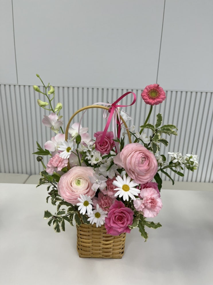 직장인 취미 / 꽃꽂이 봄 기운 가득 담은 핑크 꽃바구니