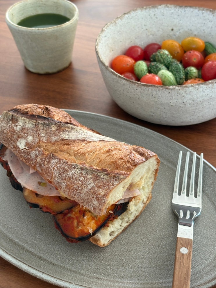 - 마르쉐시장에서 장 봐온 신선한 야채들로 만든 샌드위치와 샐러드로 아침 시작 씨스가 집으로 놀러와서 (...