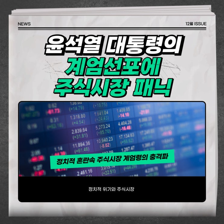 갑작스러운 뉴스 소식에 나라가 어수선한 상황이 되었다. 윤석열 대통령의 비상계엄 선포가 주식시장에 미...