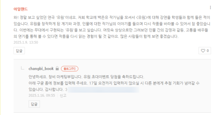 https://blog.naver.com/changbi_book/223719929649 오호~ 창비 출판사 블로그에서 연극 '유원' ...