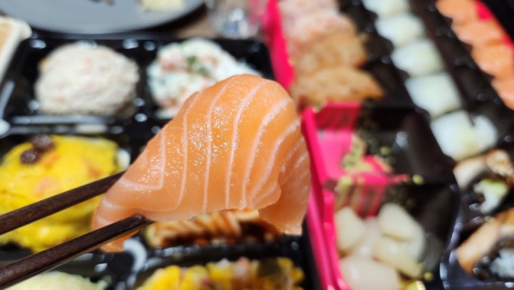 샐러드도 여러종류.새우튀김에 회초밥도 종류별로...한점한점 먹어보니...맛이 그런대로 괜찮으네요. 이마...