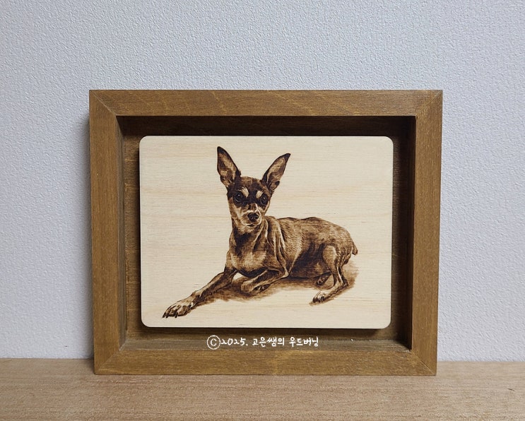 브라운 액자 우드버닝 반려동물 초상화