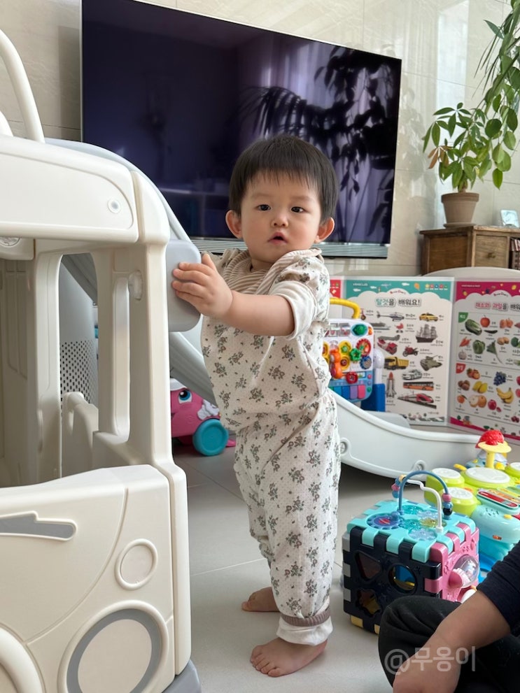 첫째짜루는 키우며 알게된거지만 대근육 발달이 참 느린아이에요. 그렇다보니 당시에 미끄럼틀은 돌이후에 ...