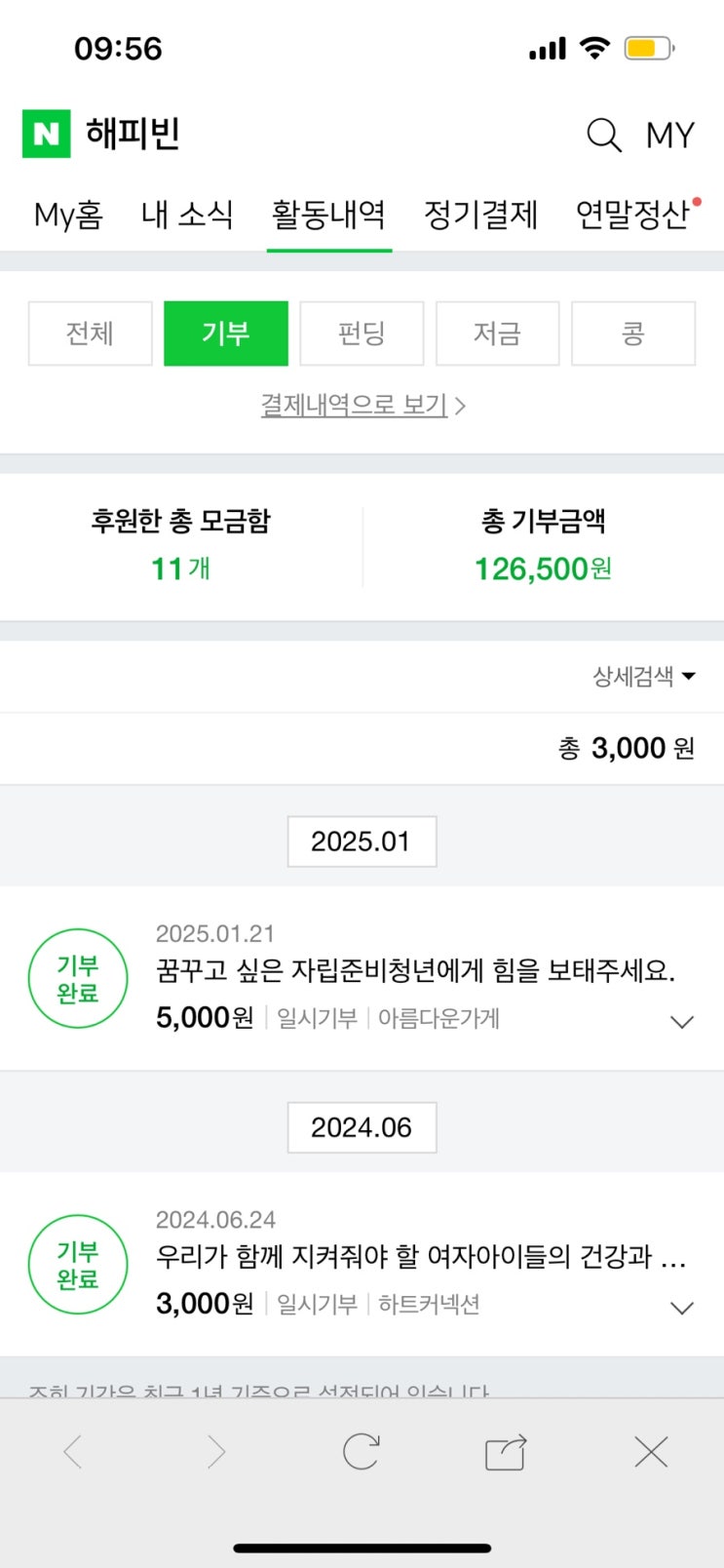 블로그에 글만 썼을 뿐인데 12만원이 기부됐다니 네이버 해피빈 계속 되었으면... 암튼 새해 첫 기부는 올...