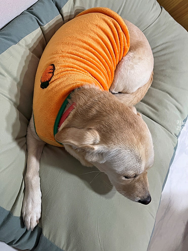 제주 당근이 유명하다고 해서 강아지 겨울 잠옷 샀다.