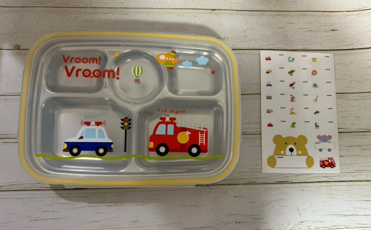 키친유 어린이집준비물 부릉부릉 스텐식판 가방 도시락세트(깊은형)