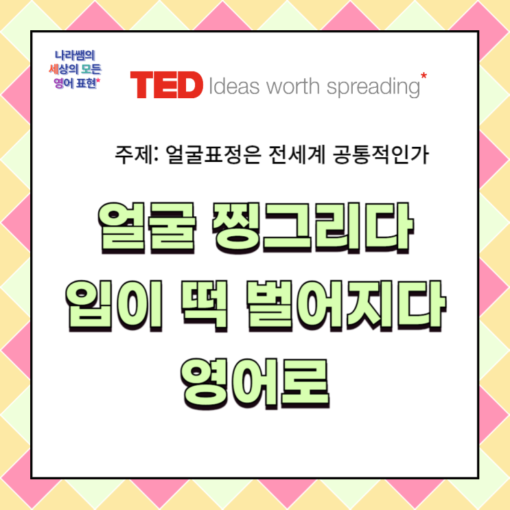 안녕하세요. 세상의 모든 영어 표현 세모영 나라쌤입니다. 지난번 포스팅에 이어 얼굴 표정에 관한 테드 강...