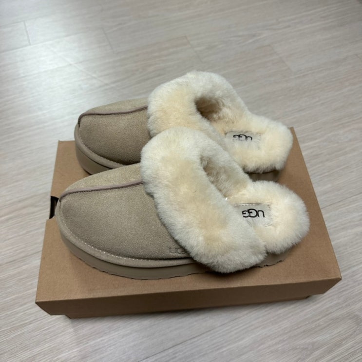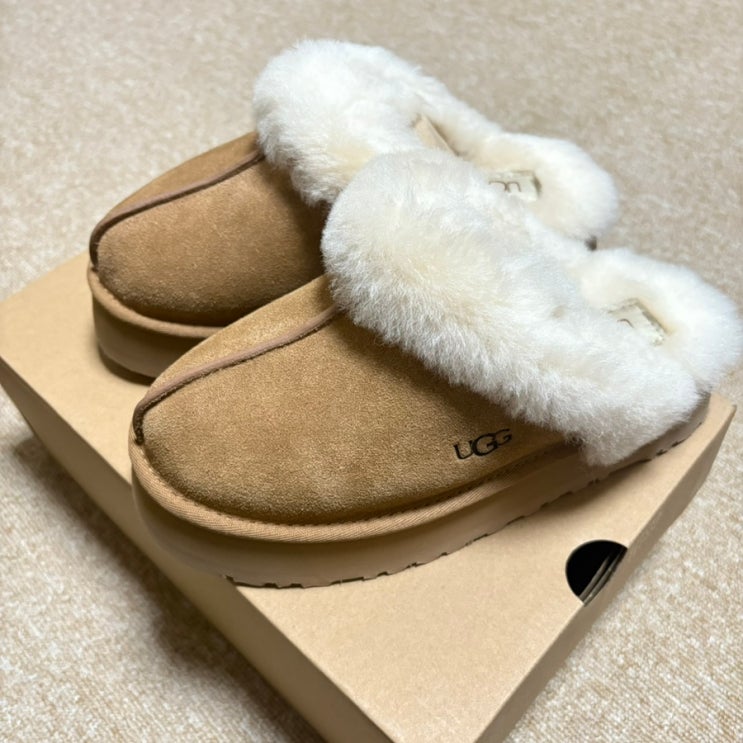 UGG 어그 디스케트 샌드 사이즈 추천 퍼 카라 플랫폼 샌들