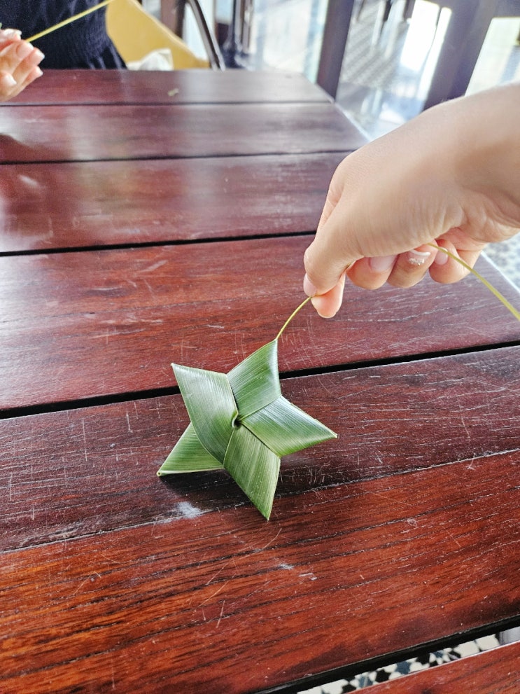 더아남 수영 후 코코넛잎만들기 비싼돈 주고 리조트에 왔고 간만에 수영해보겠다고 수영복도 샀으니 드디어...