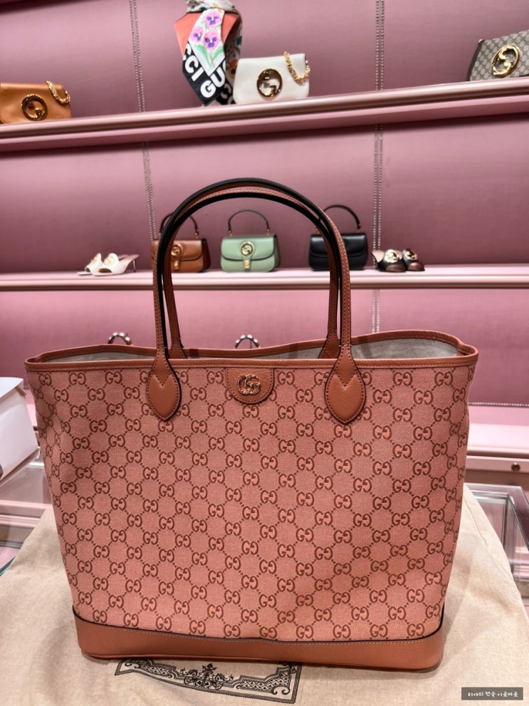 명품 기저귀가방 구찌 오피디아 GG 라지 토트백 핑크 캔버스