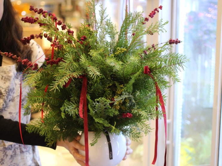 크리스마스가 다가오고 있어요 지금부터 연말까지 볼 수 있는 생화트리입니다. 수업으로도 엄청 인기가 많...