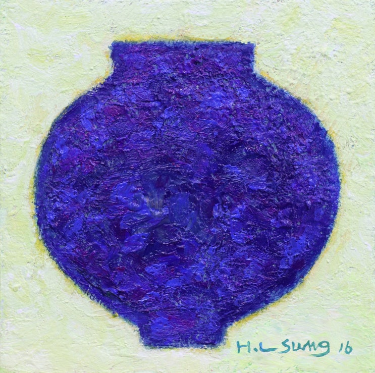 오늘 감상하실 성하림 화백의 <달 항아리> 작품은 파란색이에요. 화가는 왜 달 항아리를 파란색으로 ...