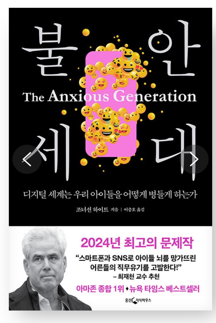 불안 세대 - 조너선 하이트 작가는 유명 사회심리학자, 남녀노소 보편화된 인터넷 사용이 불러온 어두운 부...
