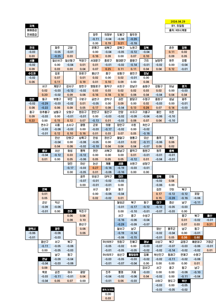 전국 아파트값 흐름과 상승 하락 지역 분석 (KB부동산 시세) 5월 첫째주 안녕하세요 히일링입니다. KB...