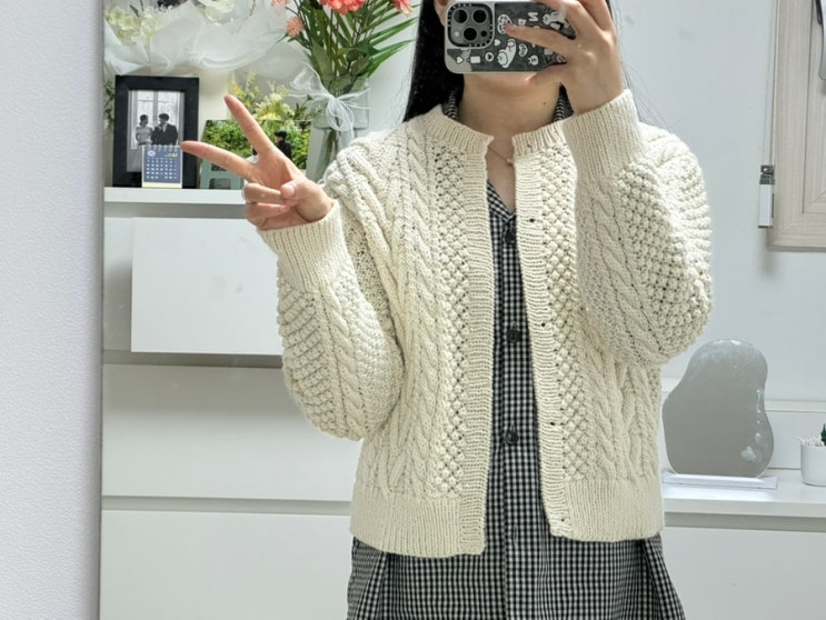 블랙베리 아란 가디건 ? 실: 바늘이야기 크렘캐시울 크림 실 소요량: 1콘하고 4/5콘, 50g 남음 바늘: 니...