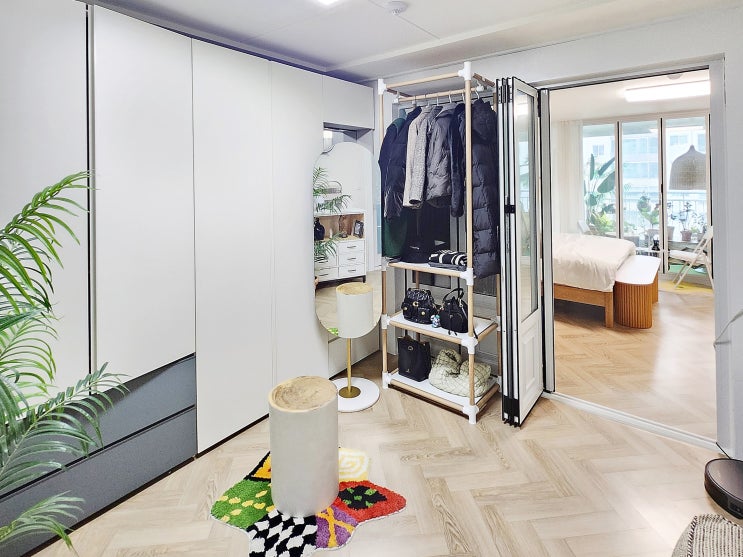 저희집의 안방 드레스룸 최근 모습! 겨울옷들은 부피가 있다보니 자주 입는 외투들을 옷장 안이나 스타일러...