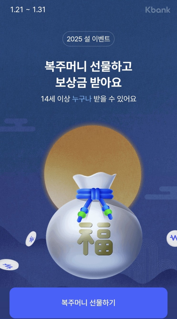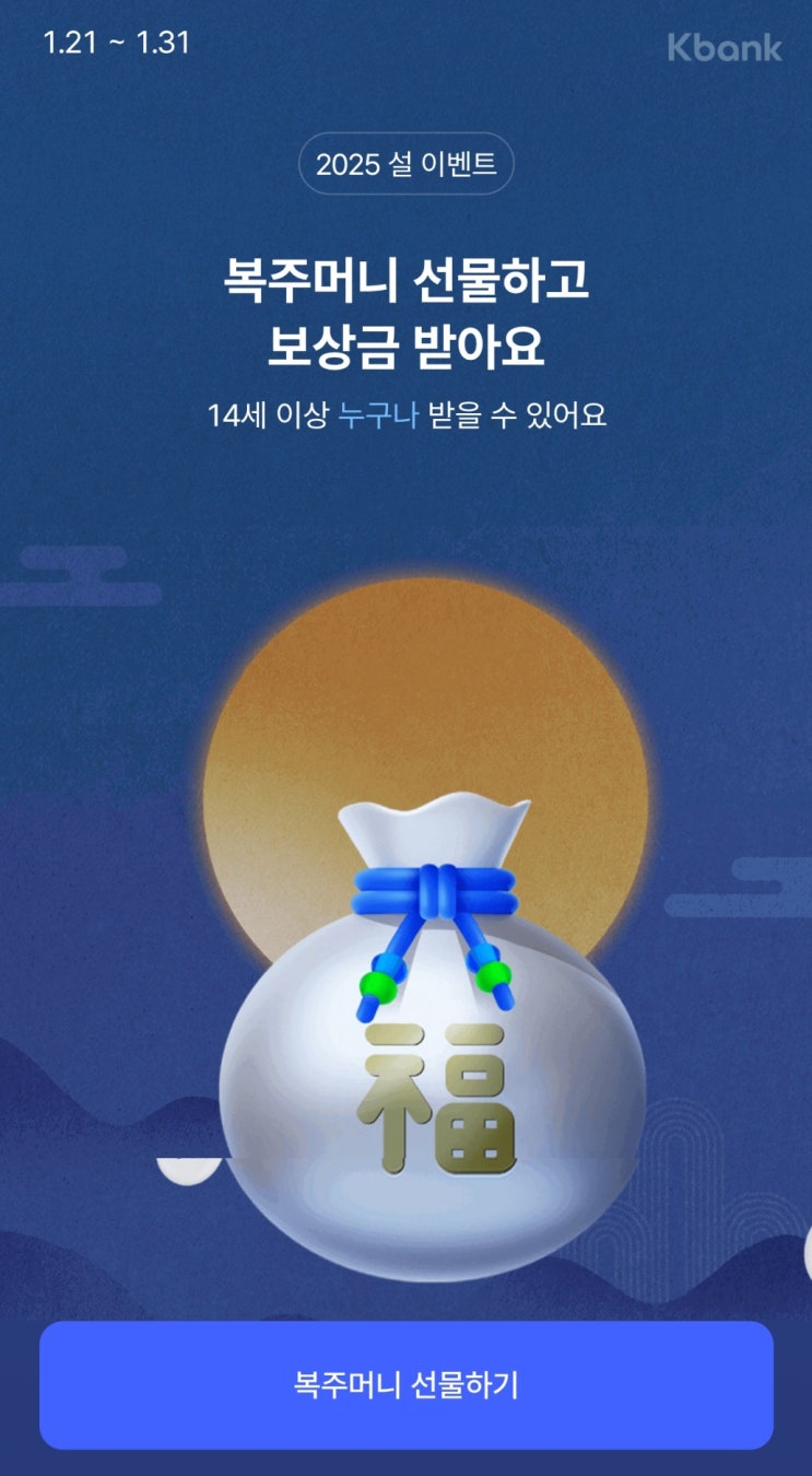 [케이뱅크 2025 설이벤트] 복주머니 선물하고 보상금 받아요!