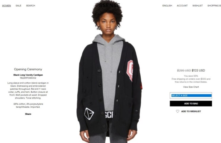 쎈스닷컴에서 최대 70%세일에~ 오프닝 세레모니 가디건을 133불에 구매가능해요 한국으로 직배송도 가능하...