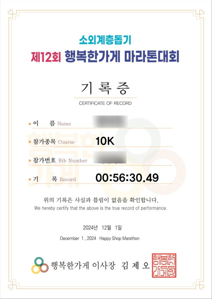 소외계층돕기 제12회 행복한가게 마라톤대회 :) 여의도한강공원에서10km pb달성하고 왔어용~!!